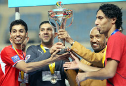 توج المحرق البحريني بلقب مسابقة كأس الاتحاد الآسيوي للمرة الأولى في تاريخه بعدما جدد فوزه على مضيفه الصفاء اللبناني 5 - 4 أمس الجمعة على ملعب مدينة كميل شمعون الرياضية في العاصمة اللبنانية، في إياب الدور النهائي. وسجل علي السعدي وروني عازار ومحمد قصاص أهداف الصفاء، والبرازيلي لياندسون دا سيلفا ومحمود عبدالرحمن رينغو أهداف المحرق. وكان المحرق خطا خطوة كبيرة نحو إحراز لقبه القاري الأول في تاريخه وفي تاريخ الكرة البحرينية بفوزه الكبير 5 - 1 في مباراة الذهاب، علما بأن لقب المسابقة بقي عربيا منذ النسخة الأولى التي نالها الجيش السوري عام