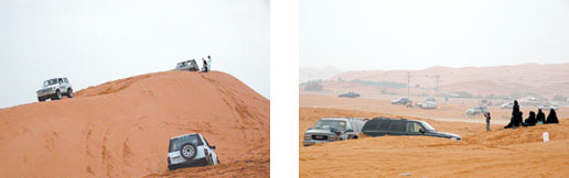 شهدت المتنزهات البرية القريبة من مدينة الرياض يومي الخميس والجمعة الماضيين توافد أعداد كبيرة من المواطنين والمقيمين. جاء ذلك تحت ضغط جمال الأجواء التي أجبرتهم على الخروج للاستمتاع بعد استقرار الأجواء التي سادتها الغيوم بين فترة وأخرى. (الجزيرة) انتقلت إلى بعض المواقع التي اعتاد هواة التطعيس والتزحلق على الرمال الذهاب إليها لممارسة هواياتهم البرية جنوب غرب الرياض، ولقد لاحظت عدسة (الجزيرة) خلال التقاط الصور بعض التقليعات الشبابية في مجال التطعيس، ربما كان القصد منها لفت أنظار حشود المتفرجين مثل بعض الدمى التي تحاكي بعض الشخصيات المحببة للأطفال.