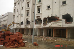 نفّذت إدارة المباني والتعديات بأمانة محافظة جدة، بمساندة بلدية العزيزية وبدعم من شرطة البلدية نهاية الأسبوع الماضي، إزالة جزء من الحوائط الخارجية لمبنى منتهي التشطيب مكون من سبعة أدوار، لعدم استجابة صاحبه بإيقاف العمل وتصحيح وضع المخالفة. وأوضح مدير إدارة مراقبة المباني والتعديات بأمانة محافظة جدة المهندس خالد سليم بارعيدة، أنّ هذه الإزالة تتم للمرة الرابعة لنفس المبنى مما يدل على الإصرار على المخالفة .. مشيراً إلى أن الإزالة لم تتم للمبنى كاملاً وإنما لجدرانه الخارجية لإلزام المالك بتصحيح المخالفات الموجودة في ست عمائر تتكون كل منها من دور خدمات وأربعة أدوار متكررة ودورين (فيلا) .. إلا أنه لم يقم بإزالة هذه المخالفات التى أخطرته بها البلدية الفرعية التي قامت بإشعاره أكثر من مرة. تم تنفيذ الإزالة تحت إشراف كل من المهندس خالد بارعيدة والمهندس مطر المالكي رئيس بلدية العزيزية الفرعية .. بمشاركة 12 مراقباً وثلاثة من أفراد شرطة البلدية.