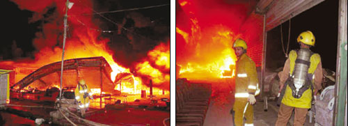 اندلع فجر السبت الماضي حريق هائل في حراج بن قاسم جنوب مدينة الرياض داخل مباسط مخصصة لبيع الأثاث والمفروشات والملابس، حيث شمل الحريق مساحة 5 آلاف متر.