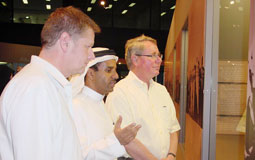 وكان في استقبالهم الدكتور خالد محمد باطرفي المشرف العام علي العلاقات العامة والإعلام بالمعرض وأثناء الزيارة التي استغرقت ساعة ونصف أستعرض الوفد إنجازات الملك فيصل المصورة وتوقفوا عند زيارته في سن الثانية عشرة ممثلاً لوالده لبريطانيا وأوروبا ثم تكرر الزيارة في سن العشرين والثلاثين.