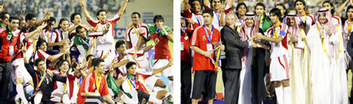 وأشاد سموهما بالمستويات المشرفة التي قدمها منتخب الإمارات الشقيق في هذه البطولة والتي تؤكد سلامة الخطط والبرامج التي ينتهجها اتحاد كرة القدم بدولة الإمارات في سبيل رقي وتطور منافسات كرة القدم الإماراتية على الصعيدين المحلي والخارجي. وتمنى سمو الرئيس العام لرعاية الشباب وسمو نائبه في ختام تصريحهما المزيد من التوفيق والنجاح في المشاركات المقبلة. كما عبر سموهما عن تهنئتهما لرئيس الاتحاد الإماراتي لكرة القدم محمد خلفان الرميثي وأعضاء مجلس الإدارة على هذين الإنجازين، مقدرين الجهود التي يبذلونها في سبيل تطوير كرة القدم الإماراتية.