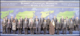 ونعبر عن سعادتنا بالحضور والمشاركة في هذه القمة لتبادل الرأي حيال أفضل السياسات المطلوبة لمعالجة الأزمة المالية العالمية التي يعاني منها العالم اليوم، متطلعين إلى نتائج إيجابية لاجتماعنا هذا تسهم في معالجة هذه الأزمة والتخفيف من آثارها، كما تسهم في استعادة الاقتصاد العالمي لنموه الطبيعي، وكذلك في وضع أسس متينة للنظام المالي العالمي بما يمنع حدوث مثلها مستقبلاً.
