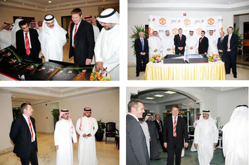 ضمن الشراكة الاستراتيجية بين الاتصالات السعودية ونادي مانشستر يونايتد الإنجليزي قام وفد رفيع المستوى من الجهاز الإداري يضم كلاً من رئيس الاستثمار السيد ريتشارد أرنولد ورئيس الإعلام ورئيس المبيعات ومدير العلاقات ومدير خدمات الجوال السيد مايك دنفي ومدير مبيعات آسيا السيد جون ناسب، مساء أمس الاثنين، بزيارة لشركة الاتصالات السعودية. هذا وكان في استقبالهم سعادة رئيس الاتصالات السعودية المهندس سعود الدويش وعدد من مسؤولي الشركة، وبهذه المناسبة رحب سعادة رئيس الشركة بحضورهم لمقر الشركة وزيارتهم للمملكة.