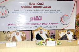 دشن صاحب السمو الملكي الأمير الدكتور فيصل بن مشعل بن سعود بن عبد العزيز نائب أمير منطقة القصيم رئيس لجنة أصدقاء بنوك الدم بمنطقة القصيم مساء أمس الأول فعاليات اليوم التوعوي الأول للتبرع بالدم وذلك بقاعة العزيزية بمدينة بريدة.
