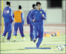 بث المهاجم النصراوي سعد الحارثي الطمأنينة في قلوب أنصار النادي العاصمي قبل مواجهة ?الشباب السبت المقبل لحساب الجولة التاسعة من دوري المحترفين عندما تقدم زملاءه في أداء ?الواجب التدريبي مساء أمس منهيا رحلة غياب قضاها في العيادة الطبية من مطلع الأسبوع بسبب ?كدمة يعاني منها. ولم يشأ الكرواتي رادان أمس إجهاد اللاعبين الذين شارك معظمهم في حفل تكريم فريق درجة الشباب فاكتفى بمناورة تكتيكية استعدادا لمران الليلة فيما سيكون المران الرئيس مغلقا مساء غد ?الخميس وفيه سيتم تحديد التشكيل النهائي الذي يشهد عودة البرازيلي إلتون والزهراني وكذلك ?الطريقة التي سينتهجها المدرب في المباراة الهامة.? في نفس الإطار أعطى الجهاز الطبي الثنائي إبراهيم شراحيلي وعواد العتيبي راحة من مران ?أمس على أن يعودا الليلة لمتابعة البرنامج، وبدأ الثنائي عبد الله حماد ومحمد الشهراي برنامجهما ?اللياقي لكن مشاركة الثاني تبدو غير واردة في المباراة القادمة لانقطاعه فترة طويلة بسبب الإصابة.