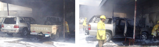 أخمدت فرق الدفاع المدني ببريدة حادث حريق وقع في مجمع لصيانة السيارات يقع على طريق الملك فيصل ببريدة.. وفي التفاصيل التي أكدها الناطق الإعلامي بمديرية الدفاع المدني بمنطقة القصيم الرائد إبراهيم بن عبدالعزيز أبالخيل أن مركز القيادة والسيطرة بإدارة الدفاع المدني تلقى بلاغاً في الساعة الحادية عشرة والنصف من صباح أمس عن نشوب حريق بمجموعة من السيارات المتوقفة بالمجمع وعلى الفور تم تحريك الفرق اللازمة للموقع وعند الوصول اتضح أنه عبارة عن احتراق ثلاث سيارات بنسبة كبيرة وتضرر سيارة رابعة بأضرار خفيفة تم تحريكها من المواقع قبل انتشار النار فيها.. وقد تم إخماد الحريق من فرق الإطفاء والإنقاذ بالدفاع المدني بحي الملك فيصل وحي التعليم بالإضافة إلى وحدة الإسناد، وقد نتج عن الحادث إصابة مواطن وأحد العمالة المتواجدة بالمواقع بإصابات خفيفة.كما أوضح الرائد أبالخيل أن إجراءات التحقيقات لا تزال جارية لمعرفة أسباب الحادث.