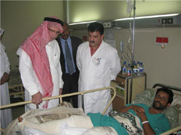 فاجأ الدكتور هشام بن محمد ناضرة المدير العام للشؤون الصحية بمنطقة الرياض مساء أمس الأول العاملين بقسم الطوارئ بمستشفي الافلاج العام بزيارة تفقدية مفاجئة ضمت تفقده لمستشفيات المحافظات الواقعة جنوب مدينة الرياض يرافقه مدير العلاقات العامة والإعلام الصحي الأستاذ سعد بن مسفر القحطاني .. وتفقد حالات المرضى والمراجعين وسجل إحصاء المراجعين لقسم الطوارئ، ثم انتقل لغرف العناية الفائقة وغرف التنويم وقسم الحضانة والصيدلية.. ومن ثم عقد اجتماع بمدير المستشفى الأستاذ عبد الله بن عبد الرحمن الحيدري وجميع الأطباء العاملين بالمستشفى بمختلف تخصصاتهم نوقشت فيه الحالات التي تمت مشاهدتها بغرف المستشفي، ثم جرى نقاش مفتوح بين مدير الشؤون الصحية والأطباء لمعرفة احتياجاتهم وما يعترضهم من مصاعب في عملهم.. بعد نهاية الاجتماع أبدى الدكتور ناضرة رضاه عن الخدمات الطبية المقدمة بالمستشفي، وأعلن انه سيتم في القريب العاجل انتقال طاقم التشغيل الطبي من شركة طبية مشغلة إلى تشغيل وزاري وان ما طرح خلال الاجتماع من مقترحات ومشاكل يواجهها العاملون والأطباء بالمستشفي سيتم طرحها خلال اجتماع مديري المستشفيات القادم بالمديرية في صحة الرياض.