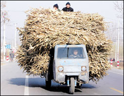 مزارعون صينيون ينقلون القصب في إحدى ضواحي العاصمة بكين بعد أن رفع البرلمان الصيني الضرائب في محاولة لرفع الاقتصاد الصيني |