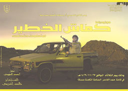 يقدم نادي المسرح في الثامنة من مساء اليوم بعمادة شؤون الطلاب عرض مونودراما (كماش الخطير) التي تحكي قصة مجرم ألقت به أفعاله في الحبس الانفرادي، والتي سيجسد الدور التمثيلي فيها أحمد السهيمي، ويخرج العمل المخرج خالد الشريمي وذلك على خشبة قاعة الشيخ حمد الجاسر....>>>... | |