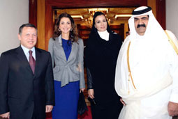 وكان في استقبال عاهل الأردن وعقيلته الملكة رانيا في لدى وصوله مطار الدوحة أمير قطر الشيخ حمد بن خليفة آل ثاني وحرمه الشيخة موزة بنت ناصر المسند. وسبقت زيارة الملك عبد الله لقطر زيارة لرئيس الديوان الملكي الأردني ناصر اللوزي في منتصف تشرين الأول - أكتوبر الماضي ثم زيارة رئيس الوزراء نادر الذهبي قبل عشرة أيام صرح خلالها أن الأردن وقطر يعتزمان إنشاء صندوق استثماري مشترك وكان الديوان الملكي الأردني ذكر أن الملك عبد الله الثاني سيجري مباحثات مع أمير قطر حول سبل تطوير العلاقات الأخوية وآليات تفعيل التعاون الثنائي في شتى المجالات خدمة لمصالح الشعبين الشقيقين.