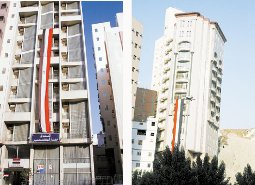 عمائر مكة تتوشح بأعلام الدول المشاركة في الحج
