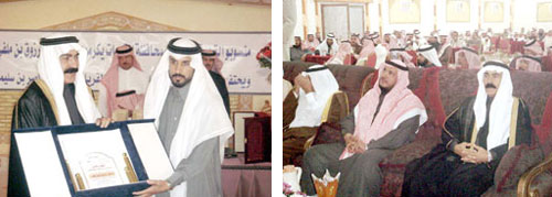 رعى مدير إدارة التربية والتعليم بالقريات الأستاذ ناصر بن سليمان المنيع الحفل الذي أقامه ونظمه منسوبو التربية والتعليم بالقريات لمدير إدارة التربية والتعليم بالقريات السابق الدكتور مرزوق بن ملفي الخنجر وذلك بمناسبة تعيينه مستشاراً بمكتب نائب معالي وزير التربية والتعليم حيث بدئ الحفل بآيات من الذكر الحكيم قرأها الطالب الشمري عقب ذلك كلمة منسوبي إدارة التربية والتعليم بالقريات ألقاها الأستاذ صالح بن عبدالله المريحيل، أعقب ذلك كلمة مديري المدارس والتي ألقاها نيابة عنهم مدير متوسطة قرطبة الأستاذ عبدالعزيز بن سعد الدوسري، بعد ذلك كلمة مدير العلاقات العامة والإعلام ألقاها الأستاذ مهلي بغيث العنزي، ومن ثم كان للشعر حضوره حيث ألقى الشاعر حامد بن مناور الرويلي قصيدة، وبعد ذلك قدم الأستاذ سالم بن علي المطرفي عرضاً وثائقياً لمسيرة الدكتور مرزوق الخنجر في تعليم القريات.