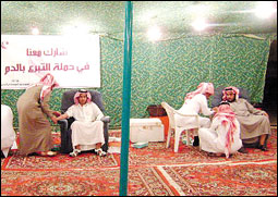 بحضور مدير مستشفى محافظة الدوادمي العام سعد بن محمد اليحيى ومدير المختبر وبنك الدم بدر الرويس انطلقت يوم السبت الماضي ولمدة ثلاثة أيام حملة التبرع بالدم التي يقيمها مستشفى الدوادمي بمناسبة قرب موسم الحج واستعداد بنك الدم بالمستشفى لتأمين جميع وحدات الدم لمستشفيات المحافظة مثل مستشفى نفي وساجر ووثيلان وتأتي هذه الحملة لتأمين الدم الكافي لما يشهده المستشفى من ارتفاع عدد المراجعين ايام الحج نظراً لوقوع الدوادمي على طريق الحجاج الذين يسلكون طريق الرياض الطائف القديم.