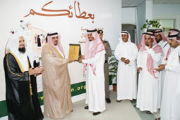 بعد ذلك انطلق الجميع لمقر الجمعية حيث دشن المحافظ الحملة الإعلامية الكترونياً وذلك في موقع رسالة الدوادمي الإعلامي وموقع مجالس الدوادمي، ثم تجول الجميع في مقر الجمعية وتعرفوا على الأقسام وكيفية كفالة اليتيم وما تقدمه الجمعية من خدمات لهذه الفئة. وفي ختام الجولة سلم محافظ الدوادمي الدروع التذكارية للجهات المشاركة (بلدية الدوادمي - رسالة الدوادمي الإعلامية - موقع مجالس الدوادمي). ثم قدم مدير جمعية إنسان بالدوادمي الأستاذ بدر اليحيى درعاً لمحافظ الدوادمي لتدشينه ورعايته لهذه الحملة ودعمه لها.