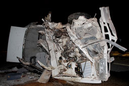 وقع حادث قبل صلاة المغرب من يوم أول أمس الأول قرب مركز جوي (غرب المجمعة) أسفر عن مصرع ثلاثة مقيمين في الحال وإصابة اثنين آخرين بعد أن أدى ارتطام سيارتهم من نوع 180 بي بمؤخرة شاحنة اعترضتهم مما أدى إلى انحراف السيارة وانقلابها قبل أن تقذف بركابها خارجها وتم نقل الجثث والمثابين إلى مستشفى الملك خالد بمحافظة المجمعة حيث باشر الحادث مدير شرطة المجمعة العقيد ناصر الغانم وفرق من الشرطة والدفاع المدني والهلال الأحمر والمرور والبلدية وعدد من الجهات ذات العلاقة حيث إن المصابين الذين تم نقلهم إلى المستشفى إصابتهم طفيفة وسيتم خروجهم اليوم أو غداً علماً أن أسماء المتوفين هم: سامي عبدالرحمن عبدالرشيد محمد، نور أنور أحمد شحاتة، حسام بسيوني مصطفى بيومي (الجنسية - مصريون).