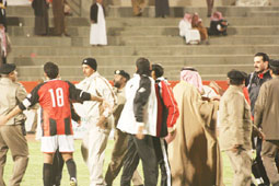حاول عدد من لاعبي الرائد وبعد نهاية مباراتهم أمام ضيفهم فريق الاتفاق أمس الأول الاعتداء على حكم المباراة الدولي مطرف القحطاني وذلك احتجاجاً على احتسابه للخطأ الذي سجل منه الفريق الاتفاقي هدف الفوز في الدقيقة الأخيرة من المباراة ولولا تدخل رجال الأمن سريعاً لحدث ما لا تحمد عقباه..