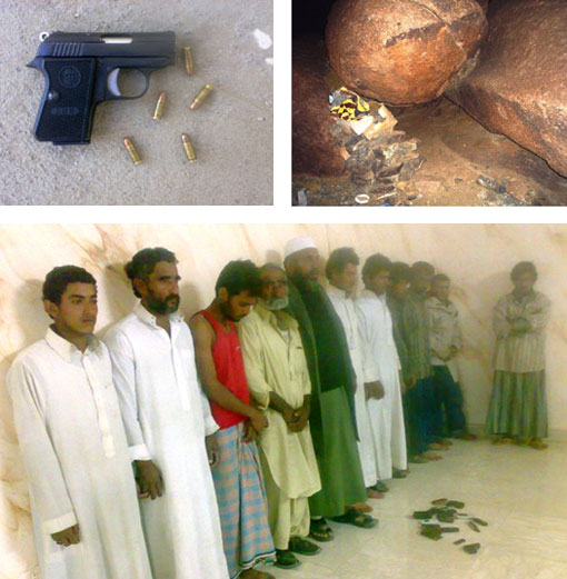 وكشفت التحقيقات الأمنية التي خضعوا لها بالشرطة عن تعاون عامل باكستاني نظامي يقوم بتصريف المسروقات عن طريق بيعها، بالإضافة إلى وافد آخر يتولى مهمة نقلها لمحافظة جدة محاولاً الخروج بها عن الطائف حتى لا يتم كشفه، فيما نجحت فرق البحث الجنائي في تحديد موقع العصابة وتحديداً اليمنيين الذين كانوا يتجمعون في أحد الكهوف على طريق الجنوب، وتبين أنهم يتخذونه سكناً وإقامة، ومنه ينطلقون لتنفيذ جرائم السرقة. وقد تم التخطيط لدهمهم، وذلك وقت تجمعهم في ساعة متأخرة من الليل، حيث واجه رجال البحث مقاومة عنيفة من قِبل اثنين منهم يُعتقد أنهما زعيميهم، وكانا موجودين إلى حين القبض عليهم جميعاً. وقد تم احتراز ما تم ضبطه من أجهزة جوالات كانت هي الباقية من المجموعة المسروقة، كما عُثر بحوزتهم على سلاح ناري بخمس طلقات حية مسروق من أحد المنازل بحي الوقادين مع أسلحة بيضاء يستخدمونها ويشهرونها إبان السطو في حال كشفهم لإخافة المجني عليهم، فيما اعترف اثنان منهم بقيامهما بسرقة ذهب وأموال من أحد المنازل.