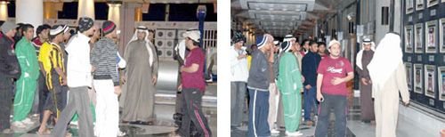 وكان في استقبال الوفد أمين عام النادي الأستاذ عبدالله القريني الذي رافقهم في جولة على كل مباني النادي الإدارية وملاعبه الرياضية، وقد شملت الجولة معسكر الفريق الأول وملاعب النادي لكرة القدم ومباني الإدارة والمركز الإعلامي والنادي الراقي.