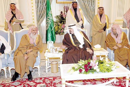 استقبل خادم الحرمين الشريفين الملك عبدالله بن عبدالعزيز آل سعود - حفظه الله - في الديوان الملكي بقصر اليمامة أمس سماحة مفتي عام المملكة رئيس هيئة كبار العلماء وإدارة البحوث العلمية والإفتاء الشيخ عبدالعزيز بن عبدالله آل الشيخ وفضيلة رئيس مجلس القضاء الأعلى الشيخ صالح بن محمد اللحيدان وأصحاب الفضيلة