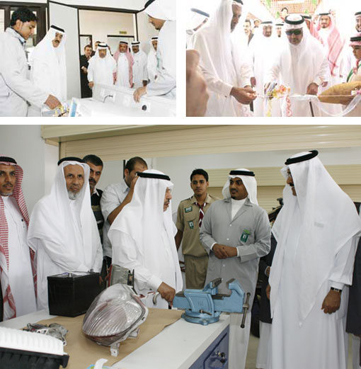 وافتتح الشيخ فقيه أيضاً المعرض الفني بالمدارس والذي احتوى على إبداعات الطلاب وإنتاجهم، بعد ذلك قام بقص الشريط إيذاناً بافتتاح مشروع مبنى الورش المهنية بالمدارس، وهي عشر ورش لميكانيكا السيارات وصيانة الحاسب الآلي والدهان والديكور المنزلي والحدادة والنجارة والتمديدات الصحية والخياطة والإلكترونيات والكهرباء الأساسية وأخيراً ورشة كهرباء السيارات.