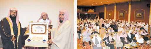 وفي نهاية الحفل كرم المطلق الجهات الداعمة والرعاة حيث كرمت (الجزيرة) بشهادة شكر وتقدير تسلمها الزميل الدكتور عمر اللحيان كما كرم الشيخ خميس بن مينخر الطلاب المشاركين في الدورات.