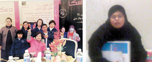 السيدة حصة العبدان والدة آمنة الحميد وهي من بنات الجمعية وتحدثت لنا والدتها قائلة: لدي ستة من الأبناء اثنان معاقان الابن لديه إعاقة جسدية في أطرافه السفلى وابنتي آمنة كما تشاهدين، ولكن معاناتي معها أنني لم أستطع حتى الآن إلحاقها بأي مدرسة إما لبعدها عن المنزل أو أنه لا يوجد أصلا مدرسة يوجد فيها دمج فقد سمعنا عن الدمج ولم نشاهده حتى الآن وابنتي بلغت الثامنة عشرة من عمرها ولم تتلقى أي تعليم فاضطررت لأخذها معي إلى مدرسة تحفيظ القرآن والحمد لله أصبحت تعرف القراءة.