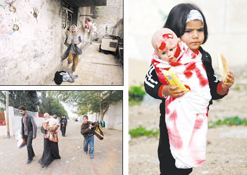 ومن جانبها أعلنت مصادر فلسطينية أن الطيران الإسرائيلي شن غارة مساء الأربعاء على مسجد التقوى في مدينة غزة ما أدى إلى سقوط ثلاثة جرحى. وأفاد شهود عيان أن الغارات وعمليات القصف الإسرائيلية استؤنفت على قطاع غزة فور انتهاء فترة تعليق القصف الإسرائيلي لمدة ثلاث ساعات أمس الخميس وراح ضحيتها العديد من الشهداء والجرحى. يشار إلى أن أكثر من ألف عائلة فلسطينية نزحت من رفح بعد تحذيرات إسرائيلية بقصف منازلهم. وفي غضون ذلك أعلن الجيش الإسرائيلي أن خمسة من ألويته تعمل في قطاع غزة ليل نهار دون توقف. ونقلت صحيفة (يديعوت أحرنوت) العبرية روايات لضباط كبار في الجيش الإسرائيلي، عن القتال الدائر في غزة، مشيرة إلى أن الكثير مما يحصل على الأرض ليس معروفاً. ونقلت عن أحد هؤلاء الضباط قوله: (نحن نتقدم ببطء وبحذر)، وأضاف هذا الضابط: (المقاومة تحاول جر الجيش الإسرائيلي إلى المناطق المبنية أكثر).