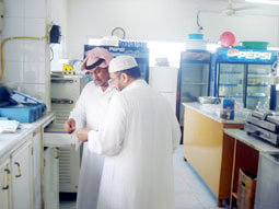 أسفرت الجولات التي قام بها قسم صحة البيئة بالمجمع القروي بالشقيق عن مخالفة وإغلاق وتغريم 29 محلاً مختلفة النشاطات، وذلك خلال شهر ذي الحجة الفائت. وتم مخالفة وتغريم ثلاثة مطاعم لعدم تطبيق بعض الاشتراطات الصحية وتدني مستوى النظافة لديها، كما تم مخالفة بقالتين وخمسة محال سوبر ماركت؛ وذلك لوجود بعض المواد الغذائية مجهولة المصدر ومواد منتهية الصلاحية وتدني مستوى النظافة وعدم وجود شهادات صحية لبعض العمالة الموجودة فيها.وشملت الجولات الوقوف على محال بيع الوجبات السريعة؛ حيث تم مخالفة وتغريم وإغلاق 10 محال في مواقع مختلفة من المدينة والقرى التابعة لها؛ وذلك لتدني مستوى النظافة بها وعدم تطبيقها للشروط الصحية، فيما وجدت محال تعمل دون رخص، كما تم إغلاق وتغريم ثلاثة مطابخ و(منادي)؛ لعدم تطبيقها الاشتراطات الصحية ووجود بعض المأكولات البائتة التي يتم تسخينها وبيعها في اليوم التالي حيث تمت مصادرتها وتغريم المحال.وعلى الصعيد ذاته قام مراقبو الرقابة الصحية بجولة في المخابز المنتشرة بالمدينة وتم العثور في أحدها على طبليات غير صالحة للاستخدام؛ فقد تكونت عليها فطريات وعفن الخبز، وقد تم مصادرة 38 طبلية وإتلافها وإغلاق المخبز وتغريمه. كما تم الوقوف على مغاسل الملابس وتم مخالفة ثلاث منها؛ لعدم تطبيقها الاشتراطات الصحية إلى جانب مخالفات أخرى، كما تم مخالفة صالونين للحلاقة لاستخدامهما بعض الأدوات غير الصالحة صحياً ولتدني مستوى النظافة بهما.