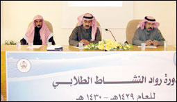 افتتح مدير عام التربية والتعليم بمنطقة حائل (بنين) الدكتور محمد بن إبراهيم العاصم مركز التدريب بالنشاط الطلابي ودورة رواد النشاط الطلابي في مركز الملك عبدالعزيز الكشفي.. وقد بدأ الحفل بالقرآن الكريم تلاه خالد الحميد.. ثم كلمة لمدير قسم البرامج العامة والتدريب بالنشاط الطلابي حمود بن سرهيد الفداع رحب فيها بالحضور.. كما بيَّن أهداف وبرنامج دورة رواد النشاط التي تستمر لمدة أسبوع وتتناول عدداً من الموضوعات مثل أهداف ووسائل النشاط الطلابي وفن إعداد الخطط وتفعيل النشاط الاجتماعي والثقافي ودور رائد النشاط وتعريف الكشافة وغيرها.. بعدها تحدث الدكتور العاصم في كلمة له رحب فيها بالمتدربين وأكد أن النشاط الطلابي هو الطريق لكشف مواهب الطلاب وأن النشاط هو وسيلة التطوير للطلاب والخروج بهم عن نمط التعليم التقليدي والتلقي إلى تدريب يمنحهم فرصة المشاركة والحوار الإيجابي وتعويدهم على المبادرة وإبداء الرأي وتشجيعهم على النقاش الهادف لبناء شخصياتهم وسمو همتهم ليكونوا لبنات صالحة في بناء الوطن بإذن الله.