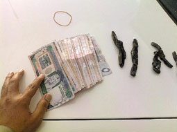 أفشلت شرطة منطقة الرياض مساء أمس الأول مخطط مروج مادة الحشيش المخدر أثناء قيامه بترويج الحشيش غرب مدينة الرياض، جاء ذلك عندما اشتبهت إحدى فرق دوريات الأمن بمنطقة الرياض بسيارة نوع كلزلر بيضاء اللون يقودها شخص على شارع بلال بن رباح بحي طويق وعندما طلبت الفرقة منة الوقوف لم يستجب ولاذ بالفرار، وأثناء مطاردته شاهدت الفرقة أن قائد السيارة يقوم برمي ما بحوزته من نافذة السيارة أثناء سيره بسرعة هربا من الدورية وعندما دخل الجاني حي طويق أغلقت عليه فرق الدوريات منافذ الحي ومحاصرته والقبض عليه وعند تفتيشه عثر بحوزته على عدد سبعة أصابع حشيش مخدر يقدر وزنها 57 جراماً ومبلغ 9000 ريال قيمة ما تم بيعه من الحشيش فرق دوريات الأمن بمنطقة الرياض سلمت المروج لإدارة مكافحة المخدرات غرب الرياض للتحقيق معه ومعرفة الاشياء التي رماها من نافذة السيارة أثناء مطاردته ولازال التحقيق جاريا.
