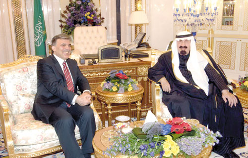 بحث خادم الحرمين الملك عبدالله بن عبدالعزيز آل سعود وفخامة الرئيس عبدالله غول رئيس الجمهورية التركية مجمل الأحداث في المنطقة، وفي مقدمتها تطورات القضية الفلسطينية، وما خلفه العدوان الإسرائيلي على قطاع غزة من خسائر فادحة في الأرواح والممتلكات، وضرورة تكثيف الجهود الدولية لإيقاف الاعتداءات الإسرائيلية على الشعب الفلسطيني ومقدراته، وجهود البلدين في العمل على تحقيق السلام العادل والشامل في المنطقة وفقاً لقرارات الشرعية الدولية ومبادرة السلام العربية. كما تطرقت المباحثات خلال الاجتماع الذي عقده الجانبان في قصر خادم الحرمين بالرياض مساء أمس إلى الجهود العربية والإسلامية لتحقيق الوحدة الفلسطينية وأهمية الوصول إلى هذا الهدف. وشملت المباحثات كذلك مجمل الأحداث على الساحة الدولية، إضافة إلى آفاق التعاون بين البلدين الشقيقين وسبل دعمها وتعزيزها بما يخدم مصالح البلدين والشعبين الشقيقين في مختلف المجالات.
