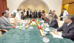 وشارك في الاجتماع وزير الدولة القطري للشؤون الخارجية أحمد بن عبدالله آل محمود والأمين العام لجامعة الدول العربية عمرو موسى ورئيس مفوضية الاتحاد الأفريقي جان بينغ والأمين العام لمنظمة المؤتمر الإسلامي أكمل الدين احسان أوغلي والوسيط المشترك للأمم المتحدة والاتحاد الأفريقي جبريل باسولي.
