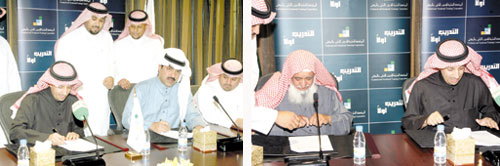 أعلن ذلك محافظ المؤسسة العامة للتدريب التقني والمهني الدكتور علي بن ناصر الغفيص ل(الجزيرة) وذلك عقب توقيعه أمس اتفاقيات تعاون مشترك بين المؤسسة وشركتي الراجحي والحكير مشيراً إلى أن المشروع يأتي رغبة من خادم الحرمين الشريفين واهتمامه حفظه الله بتدريب أبناء الوطن وقال الغفيص إنه سيتم التوقيع مع 40 جهة وقطاع خاص الاسبوع القادم في إطار هذا المشروع وستشهد كل من المدينة المنورة وجدة والطائف وجازان افتتاح معاهد تدريبية خلال الأيام القليلة القادمة بشراكة فعلية مع القطاع الخاص وما تمليه حاجة البلاد للتدريب وتطوير الشباب السعودي وخلق الفرص الوظيفية لهم وتم أمس في مقر المؤسسة بالرياض توقيع مذكرتي تفاهم مع مؤسسة سليمان العبدالعزيز الراجحي (الوطنية)، ومجموعة الحكير وذلك في مجال التدريب التقني والمهني.