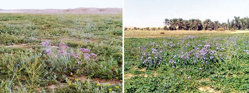 الجزيرة - ماجد التويجري اكتست فيضة الدغمانيات (62) كيلو متر شمال شرق مدينة بريدة بزهور الخزامى والنفل التي أعطتها جمالاً طبيعياً أجبرت محبي البر والربيع على الاستمتاع بأجواء جميلة.