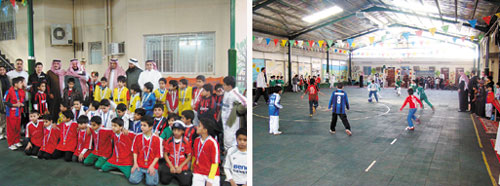 وقد افتتح المهرجان ببعض الاستعراضات الرياضية، وحملت الفرق المشاركة أسماء مدن الأراضي الفلسطينية المحتلة، هذا وقد رحب مدير المدرسة الأستاذ محمد عبدالعزيز آل هلال بالضيوف الكرام من مديري المدارس المستضافة والمشرفين والمشاركين وأولياء الأمور ولجنة التنظيم المتمثلة في وكيل المدرسة الأستاذ صابر عباس شرف والمرشد الطلابي الأستاذ وليد الشيخ ورائد النشاط الأستاذ محمد العتيبي ولجنة التحكيم المتمثلة بمدرسي التربية الرياضية في القسم الأستاذ طاهر عبدالهادي والأستاذ أيمن فهمي ثم نفذت المباريات على طريقة الدوري السريع، وذلك بخروج المغلوب من أول هزيمة، وقد تنافست الفرق بقوة لضمان أحد المراكز الثلاثة الأولى، وهذا التنافس ورغبة كل فريق في البقاء أعطيا الدوري هيبة ومتعة كبيرة، وفي نهاية التصفيات حصل فريق مدرسة العاصمة الأهلية على المركز الأول، وفريق مدرسة علوم الرياض فرع الصحافة على المركز الثاني، فيما حل فريق مدرسة الإمام الشافعي على المركز الثالث، وكرمت جميع المدارس بالكؤوس والميداليات والجوائز العديدة.