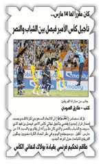 تأكيداً لما انفردت الجزيرة بنشره في الطبعة الثالثة لعدد أمس الثلاثاء فقد تم تأجيل نهائي كأس الأمير فيصل بن فهد بين فريقي الشباب والنصر إلى شهر إبريل المقبل بدلاً من الموعد السابق 14 مارس حيث سيكون هذا الموعد للقاء الفريقين الدوري في دوري المحترفين وقد طلب اتحاد الكرة من الناديين اختيار أحد الأيام الجمعة أو السبت أو الأحد الموافق 3 - 4 - 5 إبريل (7 - 8 - 9-4-1430هـ) لتقام فيه المباراة النهائية التي سيقودها طاقم حكام سويسري.