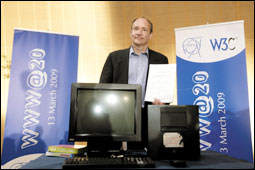مخترع الإنترنت العبقري البريطاني تيم بيرنرز لي يقف بجوار أول سيرفر للشبكة العنكبوتية بمقر المنظمة الأوروبية للبحوث النووية في جنيف، حيث احتفلت المنظمة، ومعها العالم، في الثالث عشر من مارس الجاري بمرور 20 عاما على هذا الاختراع الذي أحدث انفجارا معرفيا غير وجه الحياة على ظهر الأرض...>>>...