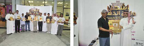 وقد تسلم الفائزون جوائزهم في جو من الفرح، وبحضور الأستاذ خلف الشمري، المدير الإقليمي لمبيعات المنطقة الغربية بشركة الاتصالات السعودية، وجمع غفير من العملاء والحاضرين، وعبّر فيها العملاء الفائزون عن فرحتهم وانطباعاتهم بهذه المناسبة، حيث أبدى محمد عثمان إدريس (سوداني) سعادته الغامرة بفوزه بجائزة كيلو الذهب قائلاً: (أشكر الاتصالات السعودية كثيراً على هذا التقدير، فلقد استمتعت بالتخفيض الذي حصلت عليه من خلال العروض الخاصة على البطاقات مسبقة الدفع، وأريد لحياتي أن تكون أسهل على الدوام، وأشكر جميع القائمين على الشركة لجهودهم الخيرة ودعمهم المخلص والمستمر لنا).