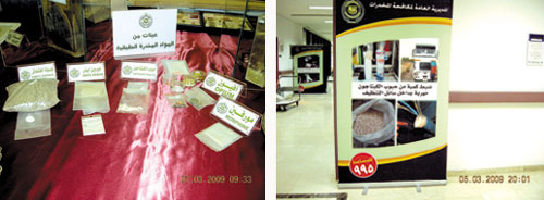 ًفي إطار الجهود المستمرة التي تبذلها المديرية العامة لمكافحة المخدرات في تنفيذ البرامج الوقائية لتوعية الفرد والمجتمع بأضرار آفة المخدرات في كافة مناطق المملكة .. تعتزم إدارة الشؤون النسوية بالمديرية العامة لمكافحة المخدرات، تنفيذ برنامج علمي شامل حول مخاطر المخدرات، سيتم تنفيذه من خلال إلقاء المحاضرات وعقد ورشة عمل تدريبية للمرشدات الطلابيات بالمدارس في جامعة الأميرة نورة بنت عبد الرحمن، وسيقام على هامش هذا البرنامج معرض مصوّر عن أضرار آفة المخدرات وإدارة التربية والتعليم للبنات (بمحافظة المجمعة)، انطلاقاً من حاجة المجتمع المدرسي للتوعية بأضرار المخدرات، وكيفية تعامل الأسرة مع المجتمع والمدرسة وتكامل العملية التربوية للوالدين، وسيتضمن البرنامج شرحاً مفصلاً عن طرق تعاطي المخدرات وأنواعها يصاحبه عرض (بوربوينت) لنماذج حية من ضحايا الإدمان بحضور الطالبات والمرشدات الطلابيات خلال الفترة الصباحية، كما يصاحب البرنامج إقامة معرض متنقل لعرض عينات حية لأنواع المخدرات والرد على استفسارات الحضور لمدة يومين، اعتباراً من يوم الثلاثاء الموافق 27-3-1430هـ.