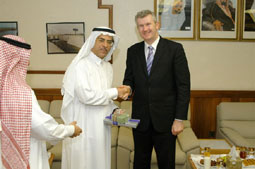 اطلع وزير الزراعة والثروة السمكية والغابات الاسترالي طوني يورك على جهود هيئة الري والصرف بالأحساء في مجال ترشيد المياه وتطبيق نظم الري الحديثة، إضافة إلى نشاط مصنع تعبئة التمور التابع للهيئة وجهود المملكة في دعم برنامج الغذاء العالمي بالتمور، ذلك خلال زيارته للأحساء يوم أمس الأول يرافقه السفير الاسترالي لدى المملكة كيفن ماغي ووفد حكومي مرافق إضافة إلى عدد من رجال الأعمال الاستراليين, حيث استقبله مدير عام الهيئة المهندس أحمد بن عبدالله الجغيمان وقدم المدير العام تعريفا عاما عن الهيئة وخدماتها المقدمة للمزارعين، كما شمل زيارة الوزير الاسترالي للاحساء الاطلاع على عدد من المعالم السياحية والتاريخية.