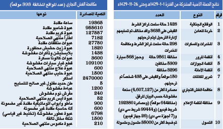 نتائج الحملة الأمنية المشتركة من الفترة 1-1-1429هـ وحتى 26-11-1429هـ