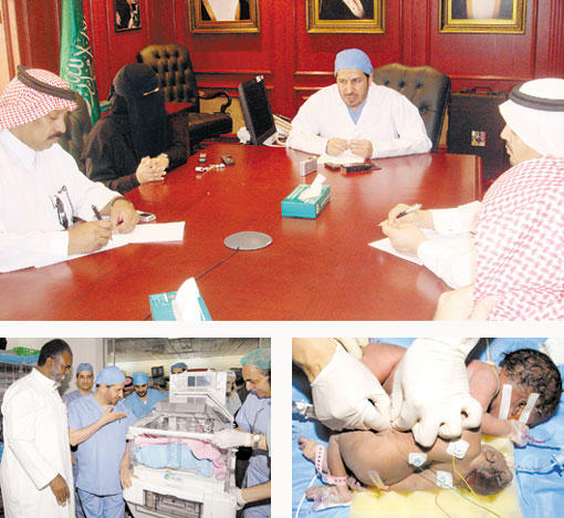 وجه خادم الحرمين الشريفين الملك عبدالله بن عبدالعزيز - حفظه الله - بعلاج سيدة من دولة الصومال الشقيقة حامل بتوأم سيامي، بعد أن تقدم زوجها السيد شعيب سليمان إبراهيم بطلب لخادم الحرمين الشريفين حفظه الله، وإنفاذاً للتوجيه الكريم تم إدخال والدة التوأم لمدينة الملك عبدالعزيز الطبية بالحرس الوطني بالرياض وبعد إجراء الفحوصات الطبية العاجلة وجد أن الأم حامل بتوأم سيامي متصل بالصدر والبطن وهما إناث إحداهما طبيعية والأخرى تعاني من عيوب خلقية كبيرة حيث لم يخلق لها دماغ وكذلك تعاني من عيوب خلقية كبيرة في القلب تعيق الحياة وتشكل خطراً على أختها التوأم وبناءً على ذلك أجريت يوم أمس الخميس 29-3-1430 الموافق 26-3-2009 بعملية قيصرية طارئة لوالدة التوأم بتواجد ثلاث فرق طبية متخصصة للولادة والأطفال الخدج وجراحة التوائم السيامية حيث وبعد خروج التوأم من الرحم قام فريق الأطفال الخدج بالقيام بإنعاش التوأم قبل فصل المشيمة خوفاً من وفاة التوأم ثم نقل بعد ذلك إلى غرفة الجراحة المجاورة للقيام بفصل التوأم كحالة طارئة جداً حيث كانت الطفلة المعاقة تعاني من عدم استقرار وبحالة حرجة جداً وبحمد الله وخلال ثلاث ساعات نجحت عملية فصل التوأم والمحافظة على حياة الطفلة الطبيعية حيث نقلت إلى غرفة العناية المركزة للأطفال والخدج ووضعها مستقر جداً ولله الحمد.