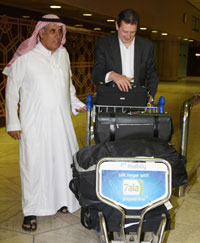 وكان في استقبال المدرب في مطار الملك خالد الدولي منسق العلاقات العامة بالنادي فهد المديد وقد اعتذر المدرب عن الإدلاء بأي تصريحات لشعوره بالإرهاق جراء السفر والوصول بوقت مبكر مشيراً إلى أن حديثه سيكون بعد نهاية المفاوضات مع إدارة النادي. وكانت (الجزيرة) الحاضرة الوحيدة إضافة إلى مندوبي المواقع الإلكترونية لنادي الهلال.