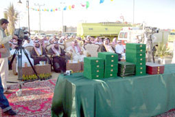افتتح رئيس مركز ساجر الشيخ نايف بن متعب بن محيا أمس الأول مهرجان أسبوع الشجرة الثاني والثلاثين تحت شعار (الاحتطاب تهديد الأشجار) والذي أقامته بلدية ساجر على ميدان الملك عبدالعزيز. وقد ألقي العديد من الكلمات، تلى ذلك تكريم صاحب أفضل حديقة وأفضل حديقة دائرة حكومية، وبعد ذلك قام رئيس مركز ساجر ورئيس البلدية بغرس أول شجرة إيذانا ببدء أسبوع الشجرة.
