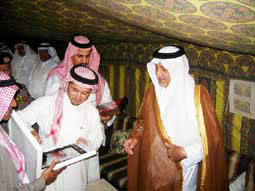 وكان سمو الأمير خالد قد وصل لمحمية محازة الصيد عصر أمس الأول، وكان في استقباله مدير مركز أبحاث الحياة الفطرية بالطائف أحمد البوق ومدير محمية محازة الصيد مصلح الجعيد، حيث قام جوالو المحمية بالسلام على سموه في المخيم المعد للاستقبال داخل المحمية، والذي اختاره سموه ليكون قاعدة لانطلاق جولاته التفقدية التي بدأت أمس برنية والخرمة وتختتم اليوم في محافظة تربة..