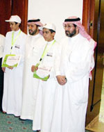 استقبل مدير عام التربية والتعليم بجدة عبد الله بن أحمد الثقفي بمكتبه صباح أمس الطالبين عبد العزيز أحمد السعيد وعبد الله سعد القرني الحائزين على المركز الثالث في المسابقة الدولية التي اختتمت قبل يومين في أذربيجان وحقق الطالبان المركز الثالث والميدالية البرونزية عن مشروعهما المتعلّق بالبيئة، وقدّم مدير تعليم جدة باسم وزير التربية والتعليم الأمير فيصل بن عبد الله آل سعود التهنئة لهما على هذا الإنجاز، معبراً عن سعادته بهذا الإنجاز الذي يؤكّد أن أبناء الوطن قادرون على تمثيله خير تمثيل، مشيداً بالدور الذي يجده الموهوبون والمتميزون من قادة هذا الوطن ومسؤوليه لعكس الصورة الحقيقية لواقع التربية والتعليم من خلال ابتكاراتهم وإنجازاتهم والتي تُعد فخراً للجميع في المحافل الدولية والعالمية.