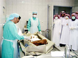 أوضح ذلك الدكتور سعيد بن غرم الله الغامدي استشاري الطب الشرعي والمشرف على إدارة الطب الشرعي بالرياض، مبيناً أن الأطباء الشرعيين عرضوا العديد من أنواع الوفيات الجنائية والانتحارية والعرضية ولنوعيات مختلفة من الإصابات، وأضاف أن البرنامج تضمن شرح حالات الطب الشرعي وبعض المبادئ الطبية الشرعية، من حيث تحديد زمن الوفاة التقريبي والتغيرات المختلفة بمسرح الوفاة، وخطوات الكشف الظاهري والتشريح بما في ذلك كيفية أخذ عينات المختبرات والتأمين والتحريز، خطوات الاستعراف على المجاهيل بما في ذلك نوعية العينات الخاصة بفحص الحمض النووي، وتقدير الشبهة الجنائية، وتحديد كيفية الوفاة، وأنواع الإصابات من خلال الحالات المعروضة، وبين المحققين اطلعوا أيضاً على العيادة الطبية الشرعية وطرق الكشف وما تحويه من تجهيزات طبية حديثة وما تقدمه من استشارة طبية لحالات الاعتداءات والاغتصاب. وقال إن البرنامج يأتي في إطار التعاون بين إدارة الطب الشرعي بالرياض وهيئة التحقيق والادعاء العام فيما يخدم العمل الأمني والجنائي، مؤكداً أن التواصل بين الطبيب الشرعي والمحققين يوثق الروابط بما ينعكس على صحة إجراءات التحقيق، موضحاً أن البرنامج يستهدف ما يزيد على خمسين ملازم تحقيق ضمن البرنامج المكثّف لإعدادهم لمباشرة أعمال التحقيق والادعاء..