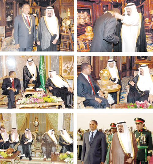 عقد خادم الحرمين الشريفين الملك عبد الله بن عبد العزيز آل سعود وفخامة الرئيس جاكايا مريشو كيكويتي رئيس جمهورية تنزانيا اجتماعاً مساء أمس في قصر خادم الحرمين الشريفين بالرياض. وفي بداية الاجتماع قلد خادم الحرمين الشريفين فخامة الرئيس التنزاني قلادة الملك عبد العزيز التي تمنح