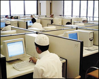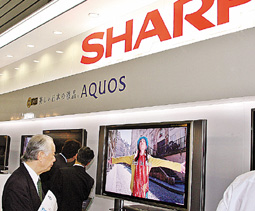 زوار معرض لشركة شارب اليابانية للإلكترونيات بضاحية يوكوهاما قرب العاصمة اليابانية يتفحصون منتجات الشركة الجديدة من أجهزة التلفزيون ذات الشاشة المسطحة (أل سي دي)، رغم أن الشركة أعلنت في الثامن من أبريل الماضي عن أول خسارة لها في تاريخها بسبب الأزمة المالية العالمية.